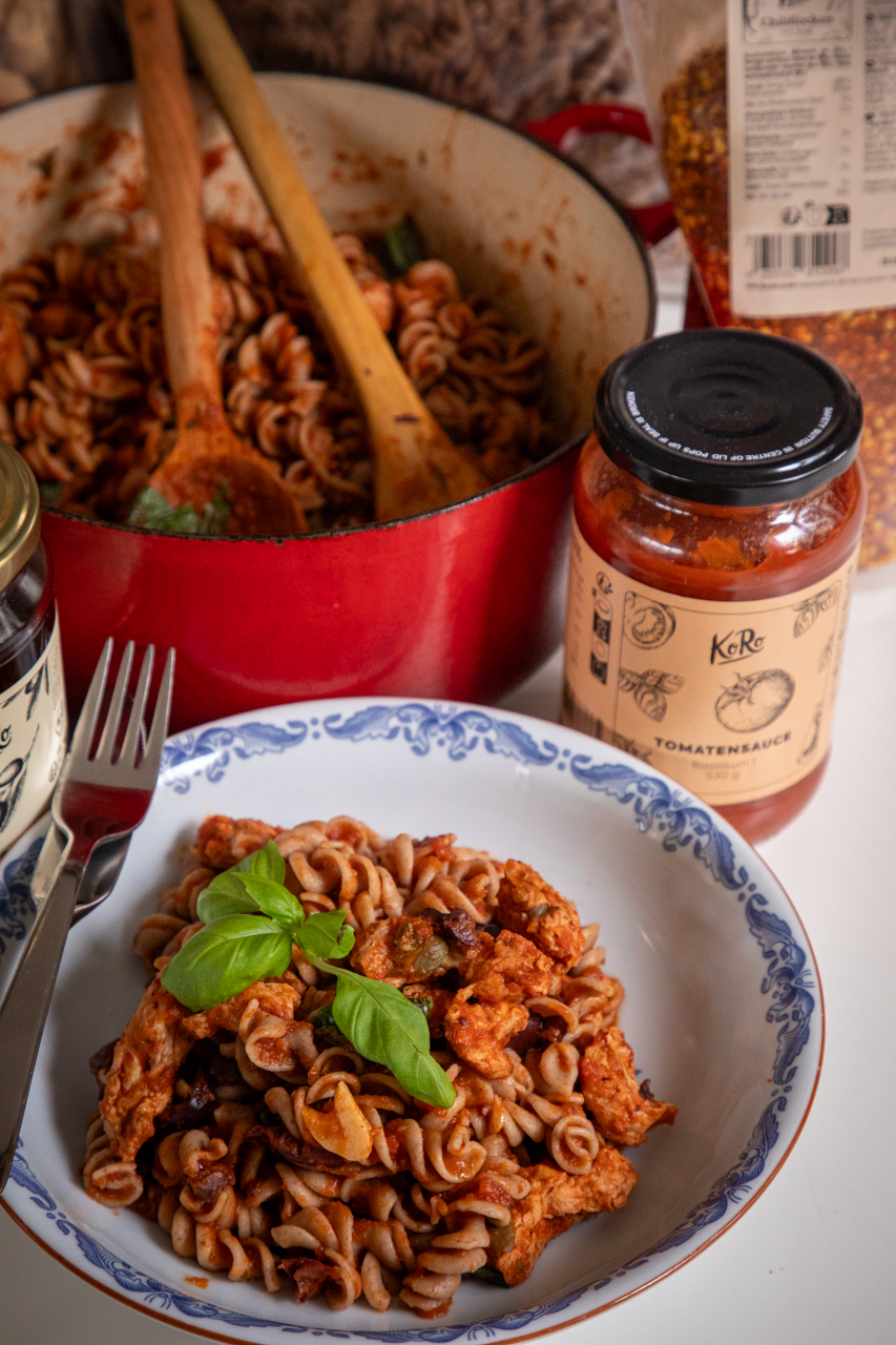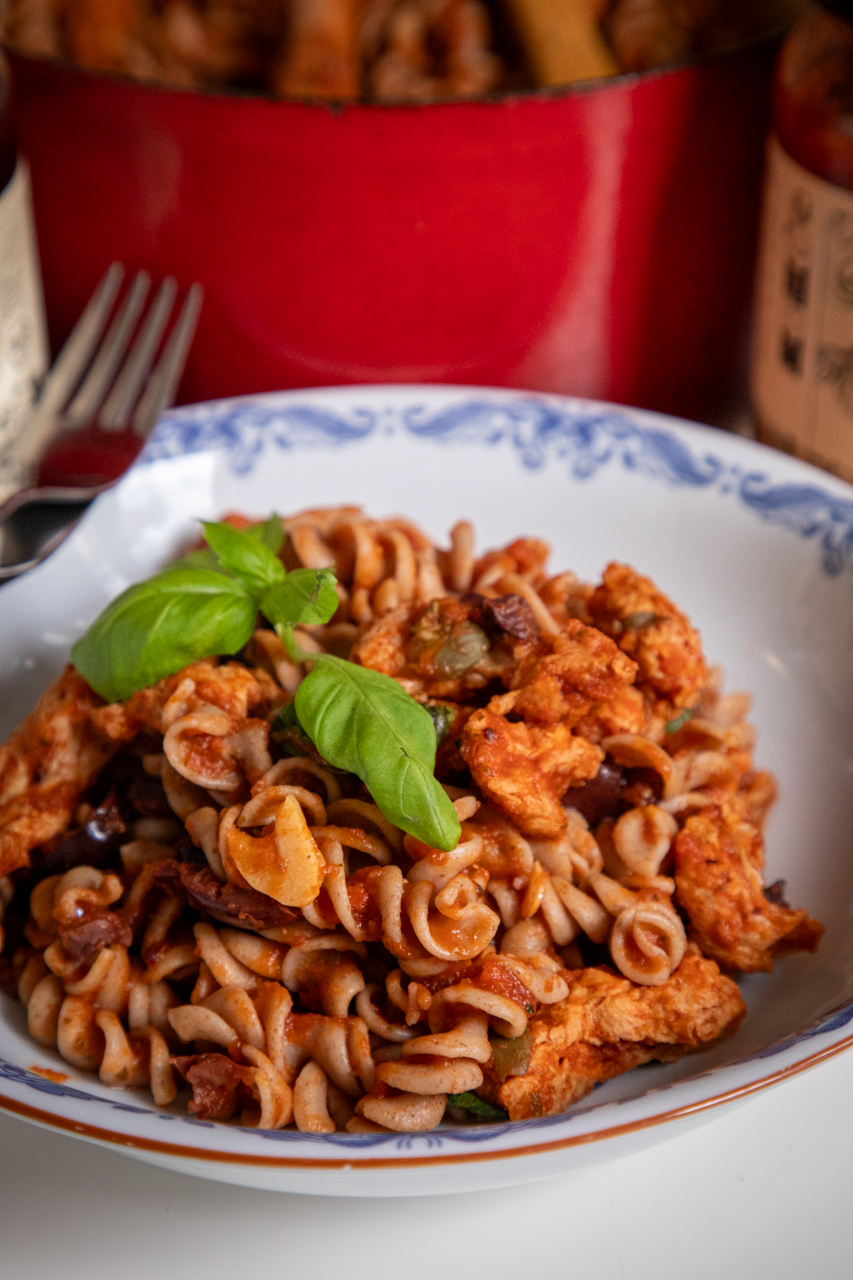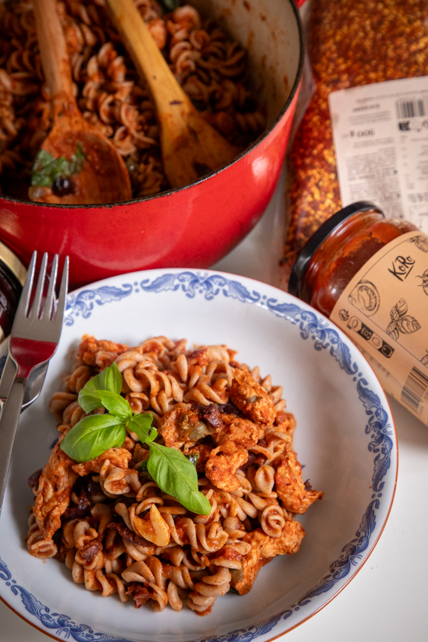 Receptet: Pasta puttanesca med sojabitar